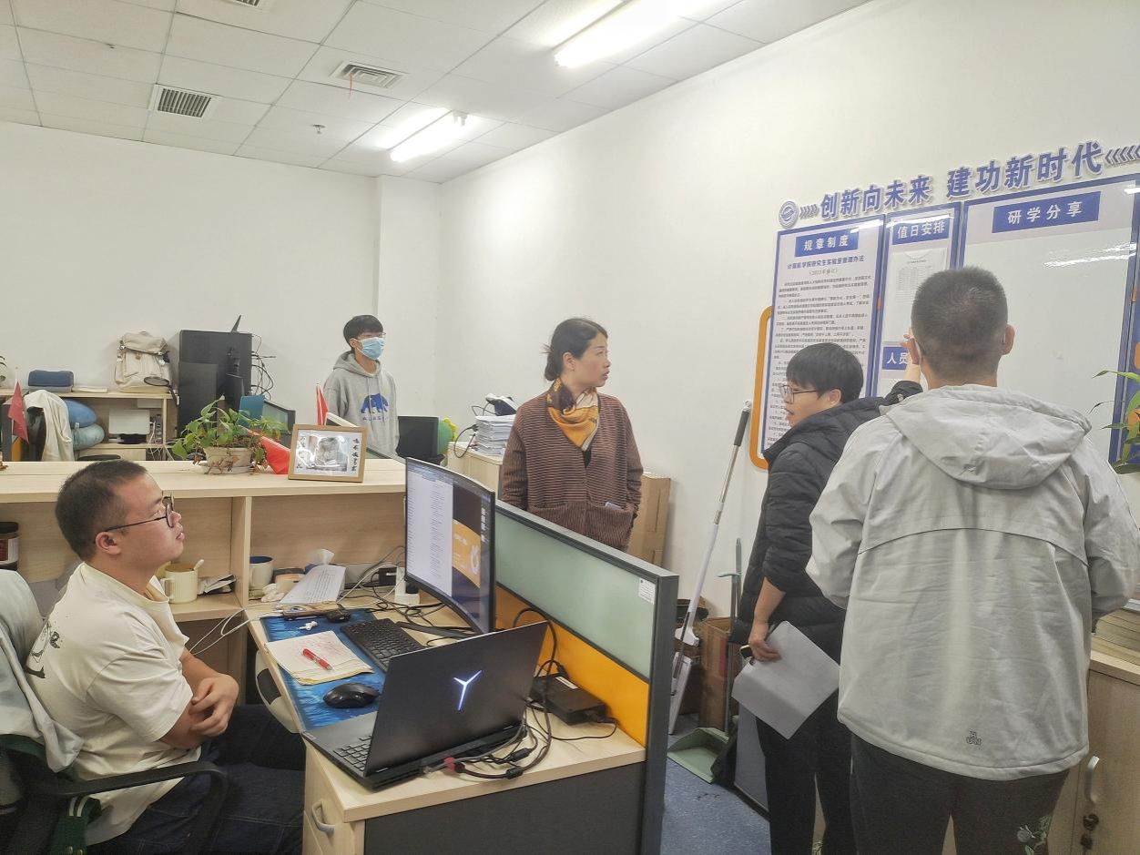 为深入推进研学空间建设,增强研究生安全教育管理,学院于2024年10月24日下午,开展第65期“我的实验室我呵护”实验室走访活动,新葡的京集团3512vip副院长胡成玉、党委副书记林小艳、研究生辅导员李欢欢和研究生秘书黄果走访全院46间研究生实验室,了解同学们的科研进展和学习状态,巡查实验室安全卫生和日常管理情况。