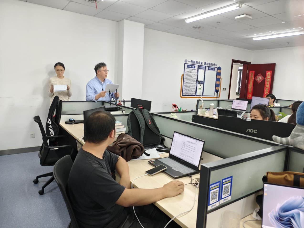走访领导及老师指出,实验室是研究生科研学习的重要场所,安全管理责任重于泰山。因此,要坚持“谁使用、谁负责,谁主管、谁负责”的原则,确保实验室的安全运行。实验室全体同学应提高安全意识,及时锁门,注意关窗断电。同时,要保持良好的卫生条件,严禁在实验室用餐以及存放零食,打造干净整洁的研学环境,供师生更好的开展科学研究。走访发现实验室总体卫生状况良好,部分实验室的文化墙建设以及实验室布置视觉效果突出,值得学习。