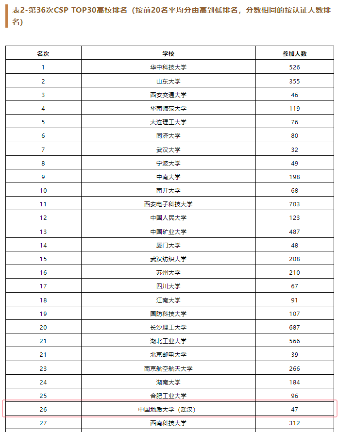 据悉,此次认证共有来自全国192个高校的8218人参加。新葡的京官网共47人参加认证考试,其中300分以上达7人(CSP总分500分)。CCF对参加人数大于等于30人且2人及以上认证成绩达300分的高校进行了平均分排名,新葡的京官网排名进入前十。此外,CCF对每所学校排名前20同学的成绩进行了平均分排名,产生了CSP TOP30高校,新葡的京官网排名第二十六。