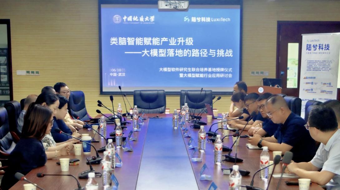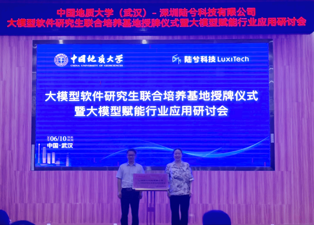 6月10日上午,新葡的京集团3512vip-深圳陆兮科技有限公司大模型软件研究生联合培养基地授牌仪式暨大模型赋能行业应用研讨会在学院126会议隆重举行。陆兮科技有限公司首席执行官汪博伦、首席技术官周芃博士、首席安全官黄彧博士等核心团队成员,水利部长江水利委员会、中国船舰研究设计中心、中国船舶重工集团公司第七一九所、上海华测导航技术股份有限公司、统信软件技术有限公司、湖北巴东地质灾害国家野外科学观测研究站、武汉通威电子有限公司和武汉市网络安全协会等有关单位代表,以及学校研究生院副院长易明、科学技术发展院副院长李鹏飞,我院副院长陈云亮,基地所依托研究生导学团队负责人尚建嘎教授、基地负责人赵一石等师生代表出席会议。陈云亮副院长主持会议。