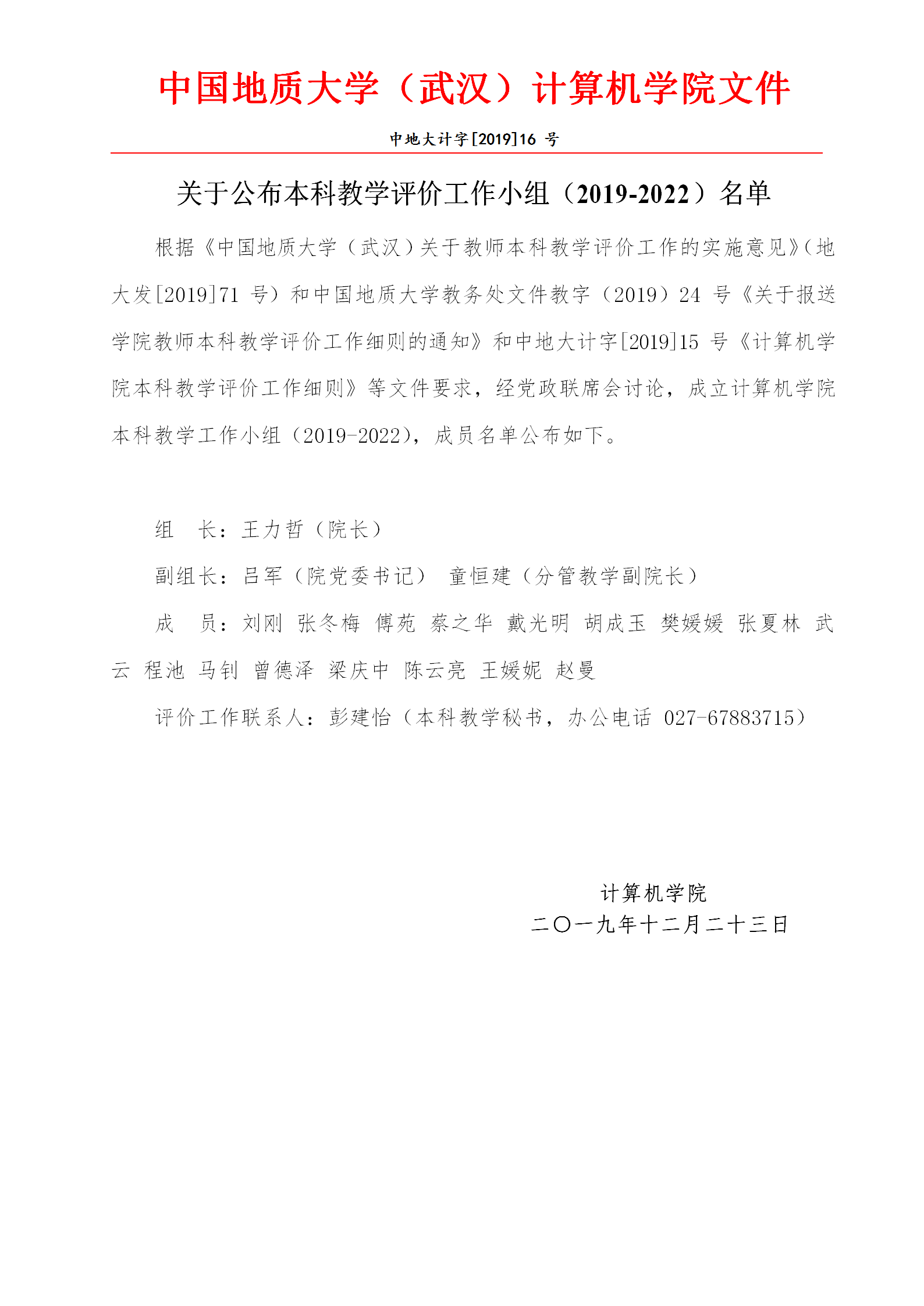 新葡的京集团3512vip关于公布本科教学评价工作小组(2019-2022)名单