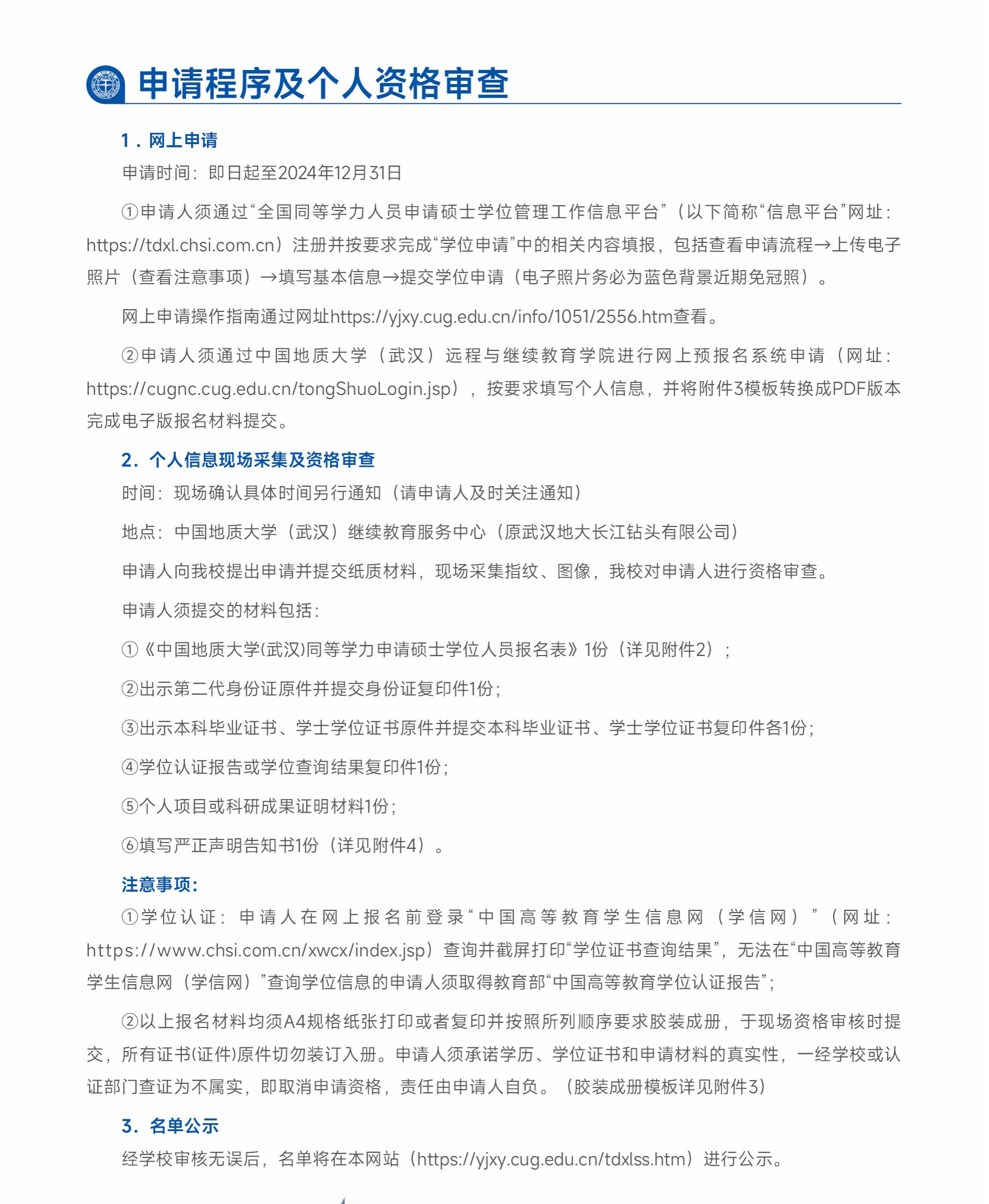 特别声明:我校未授权任何机构或个人合作开展同等学力申请硕士学位人员资格审核、教育教学、收费等相关工作。资格审核及现场确认由学校统一组织,收费按学校学费公示标准收取,由申请人通过“校园统一支付平台”缴纳,学校开具正式票据。请谨防假冒学校名义进行的宣传,以免上当受骗。