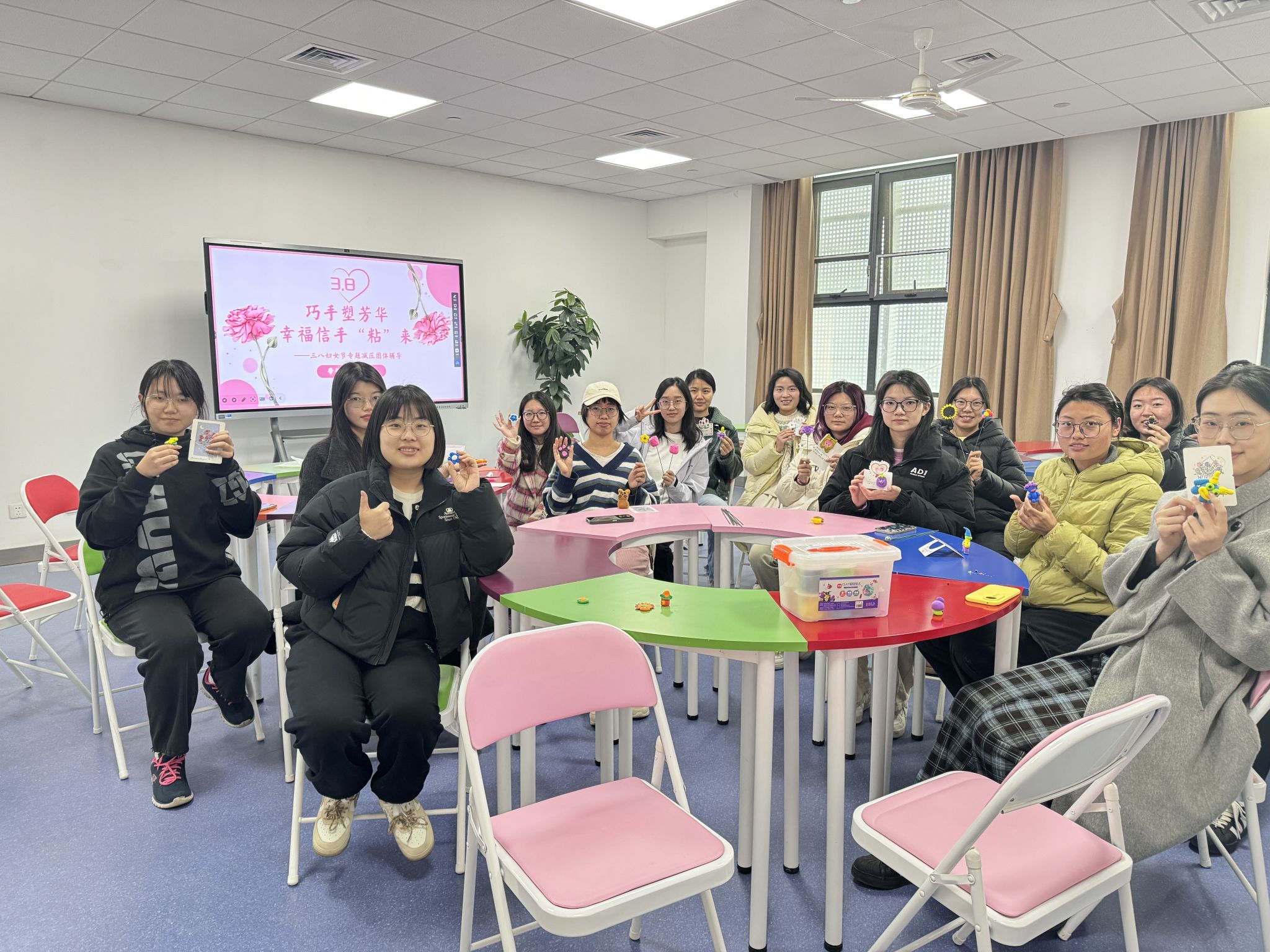 为全面了解学生心理健康状况,学院二级心理辅导站面向本研学生开展心理健康问卷调查,为学院心理健康教育和干预工作提供科学依据,促进学生健康成长。利用三八妇女节的契机,学院面向女生开展了“巧手塑芳华,幸福新手‘粘’来”减压团辅活动,学生反响热烈。